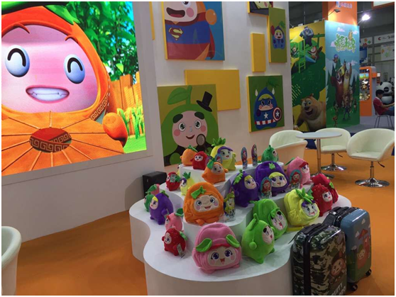 此次展會樂星互娛攜《果寶特攻》IP亮相,與各大參展商尋求合作機會。動漫衍生品對品牌的二次傳播起著至關重要的作用,在品牌運營這個環節上,《果寶特攻4》主要以電視電視媒體為主,新媒體為輔的宣傳推廣方式,線上會通過一些熱點話題、四格漫畫、壁紙、表情、微信微博等,線下我們通過舞臺劇、音樂劇、大型的活動及展會等;商品化授權(衍生品開發)也是緊鑼密鼓的合作安排;與此并行,已與廣州藍弧、金鷹卡通、杭州大頭動畫片IP品牌管理進行合作,未來也將引進多個世界級動漫IP。