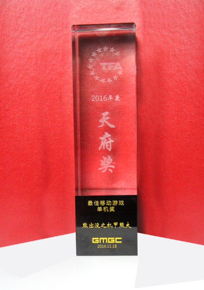 2016年11月19日,第五屆全球游戲開(kāi)發(fā)者大會(huì)暨天府獎(jiǎng)盛典在成都·東郊記憶落下帷幕。本次大會(huì)上,來(lái)自全球游戲行業(yè)的上千位精英齊聚成都,并發(fā)表主題演講,進(jìn)行巔峰對(duì)話(huà),共同見(jiàn)證這一年一度的盛大頒獎(jiǎng)典禮。在頒獎(jiǎng)環(huán)節(jié),各大游戲獎(jiǎng)項(xiàng)紛紛出爐,當(dāng)晚,樂(lè)堂動(dòng)漫旗下《熊出沒(méi)之機(jī)甲熊大》成為大贏家,榮獲今年天府獎(jiǎng)“年度十大單機(jī)游戲獎(jiǎng)”。