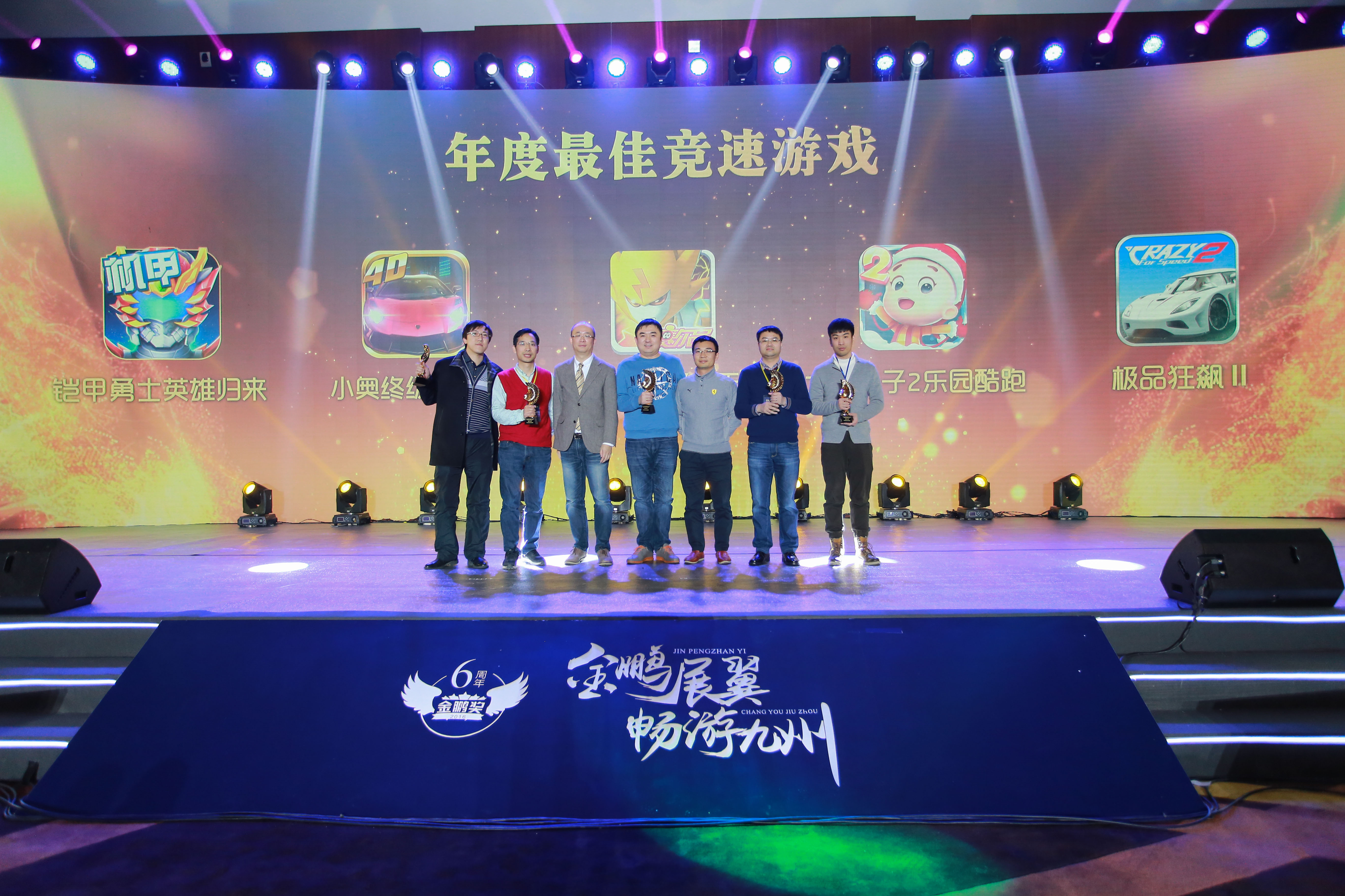2017年1月10日,第六屆金鵬獎“中國原創游戲評選大賽”在北京國家會議中心圓滿落幕。金鵬獎由炫彩互動和環球網聯合主辦、UCCVR協辦、卓盟科技贊助,活動現場匯集了百余家廠商和十余家媒體,共同探討業界熱點話題。同時舉行的還有頒獎典禮,對16年度各個領域的優秀游戲進行表彰,同時展望17年的驚喜。本屆金鵬獎,樂堂動漫獲得中國電信愛游戲“年度最佳原創廠商”獎,旗下手游《鎧甲勇士之英雄歸來》、《熊出沒4叢林冒險》分別獲得“年度最佳競速游戲”、“2017年最受期待單機游戲”兩項大獎。