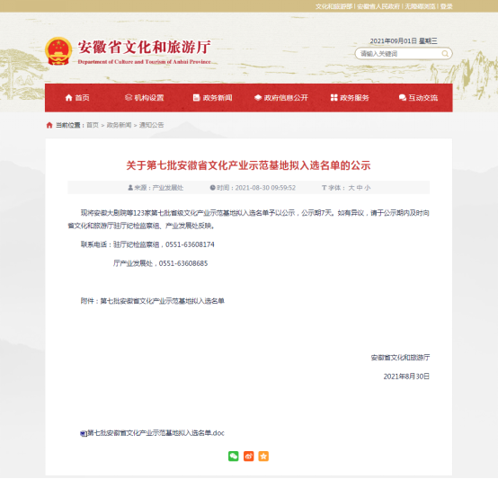 第七批安徽省文化產(chǎn)業(yè)示范基地?cái)M入選名單