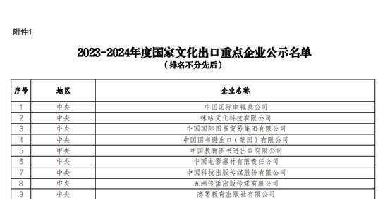 近日,中華人民共和國商務部公示2023-2024年度國家文化出口重點企業和重點項目名單的公示,中國國際電視總公司等企業評為203-2024年度國家文化出口重點企業,中國電視長城平臺等評為為2023-2024年度國家文化出口重點項目;其中,合肥樂堂動漫信息技術有限公司被評為國家文化出口重點企業之一。